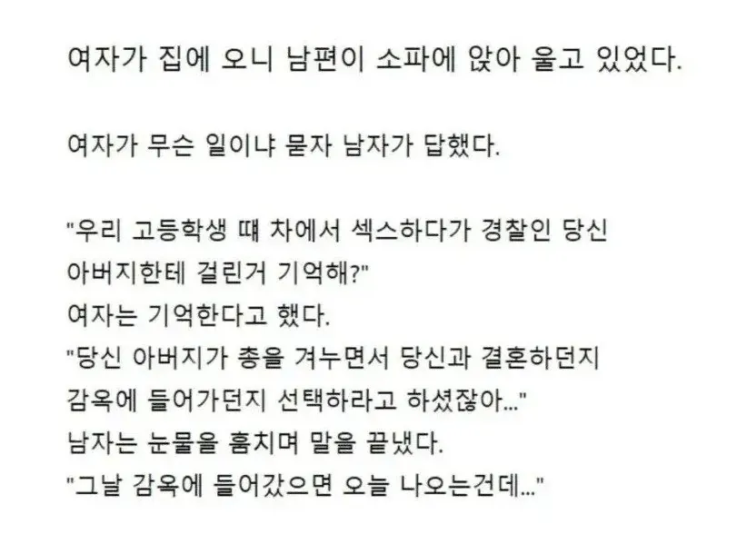 과거를 후회하는 남편의 눈물