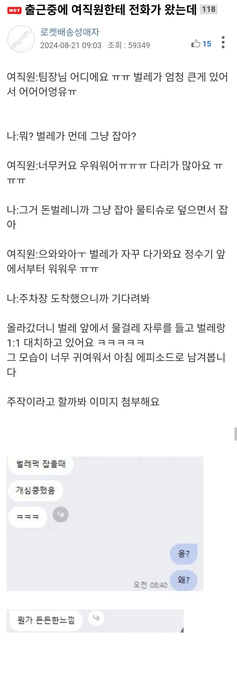 출근 중에 직원에게 문자 받은 팀장님