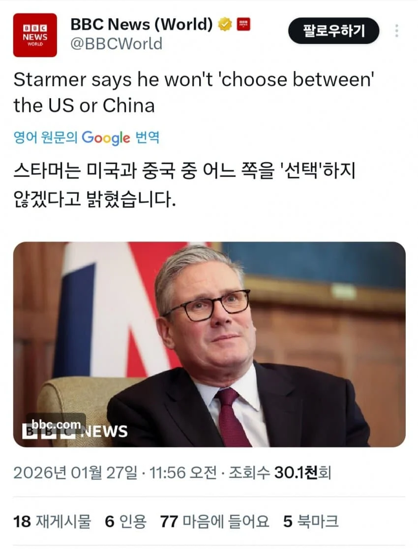 영국 총리 : 이제는 미국의 동맹국이 아니다