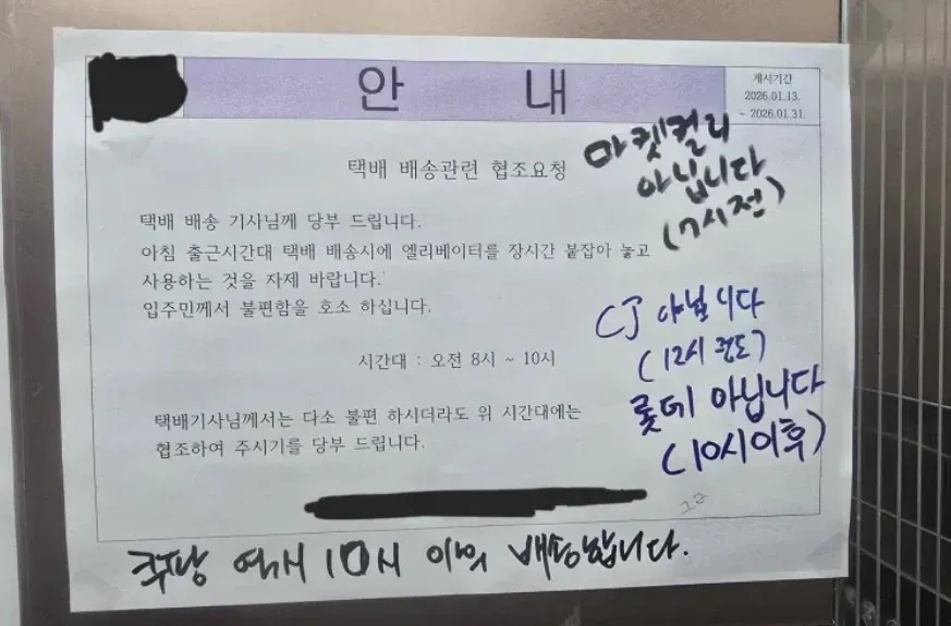 아파트 택배 안내문에 남겨진 택배기사의 반박 메모