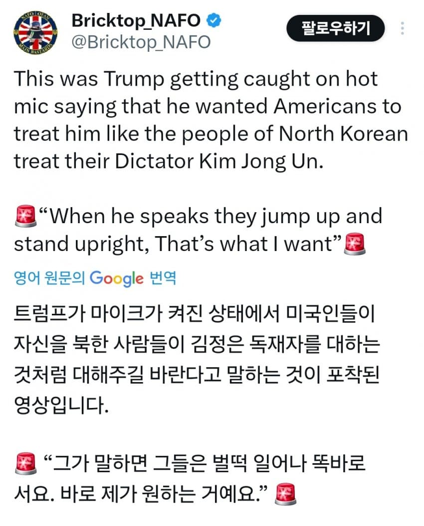 트럼프, "날 김정은처럼 대하는 것처럼 해줬으면 좋겠다."