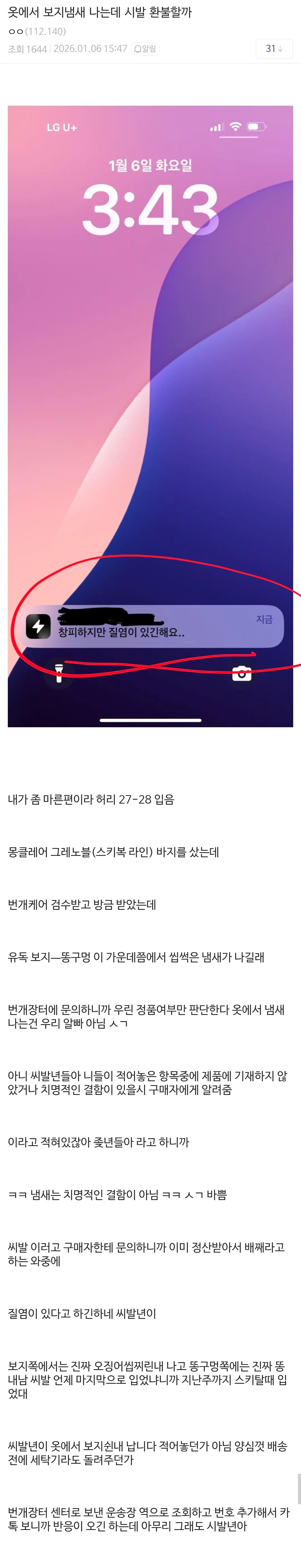 바지샀는데 ㅂㅈ냄새 남.