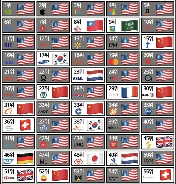 전세계 기업 시총 상위 국적