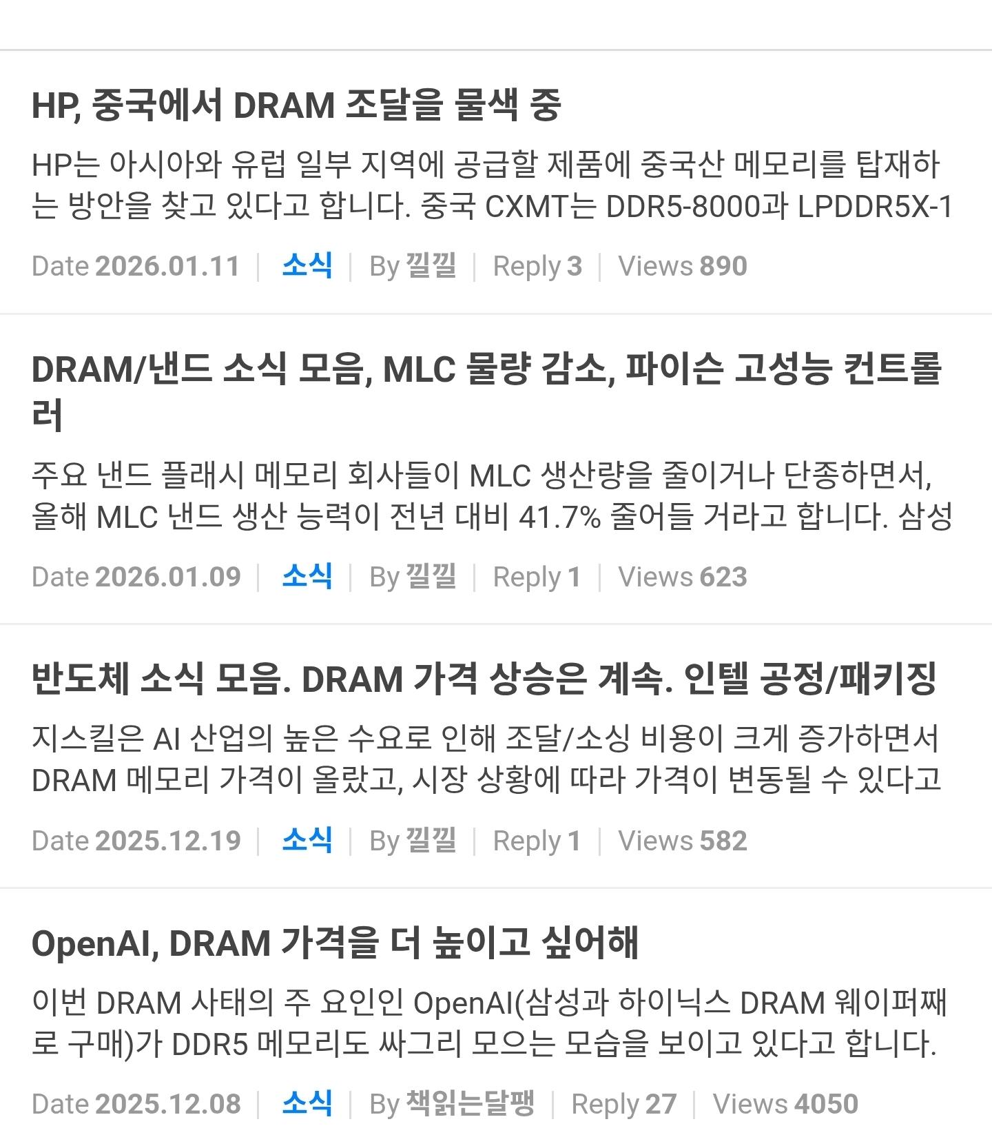 5.몇몇기업(오픈ai)이 ddr4 ddr5를 매점매석해서
