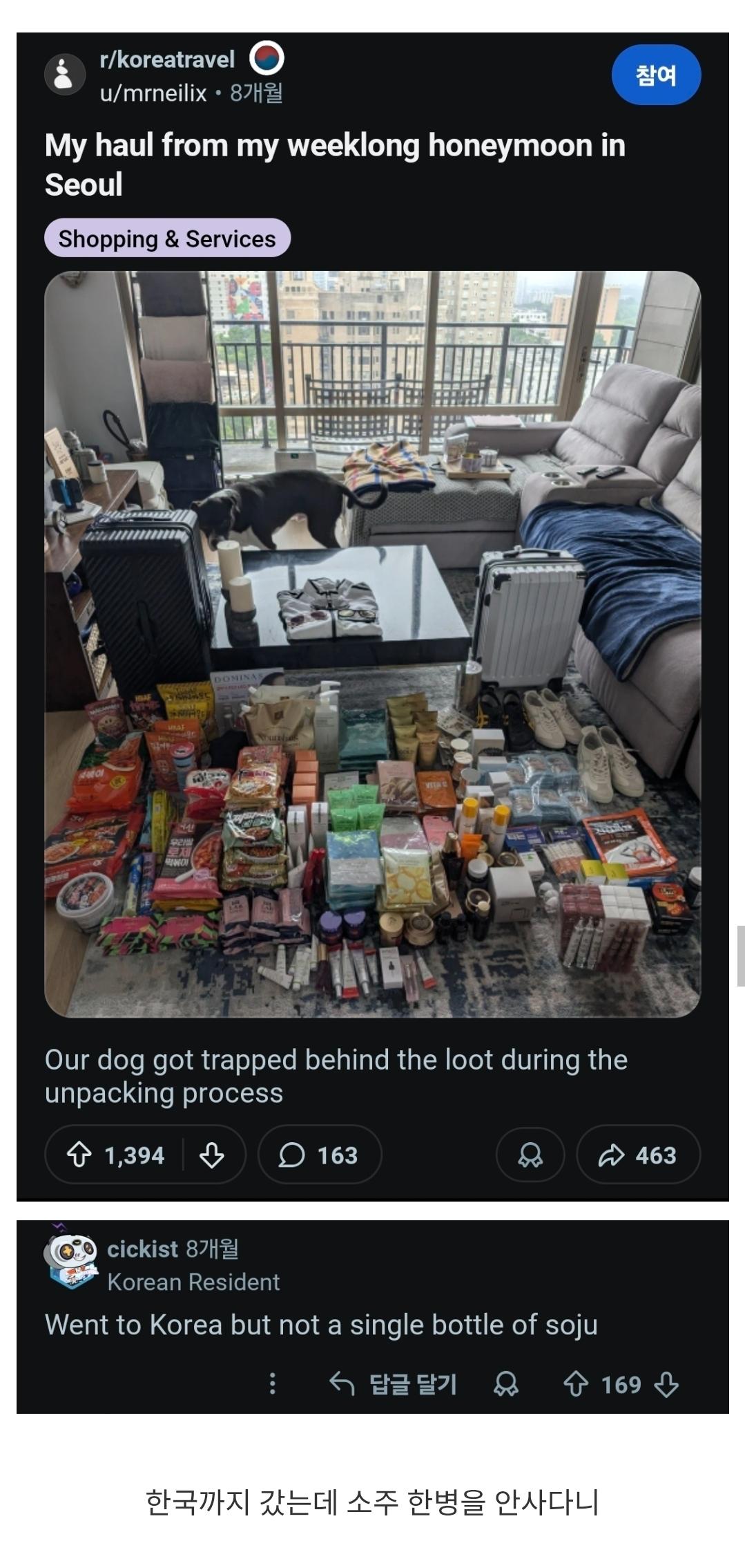 한국 신혼여행에서 산 기념품을 지적하는 댓글