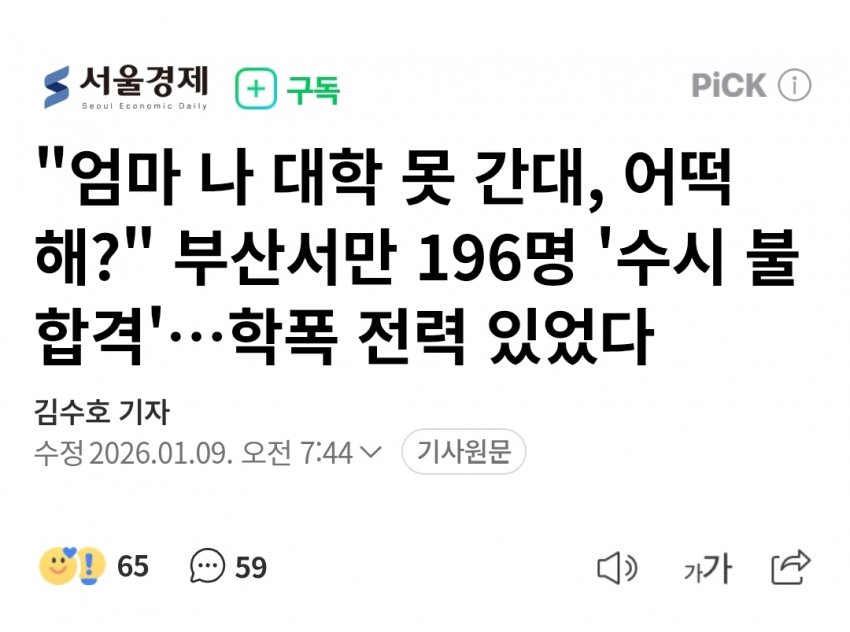 • 정부 방침에 따라 2026학년도 대학 입시부터 학폭 가해 이력이 있는 지원자에게 감점을 부여하면서 부산 지역 대학 수시모집에서 196명이 불합격 처리되었다.