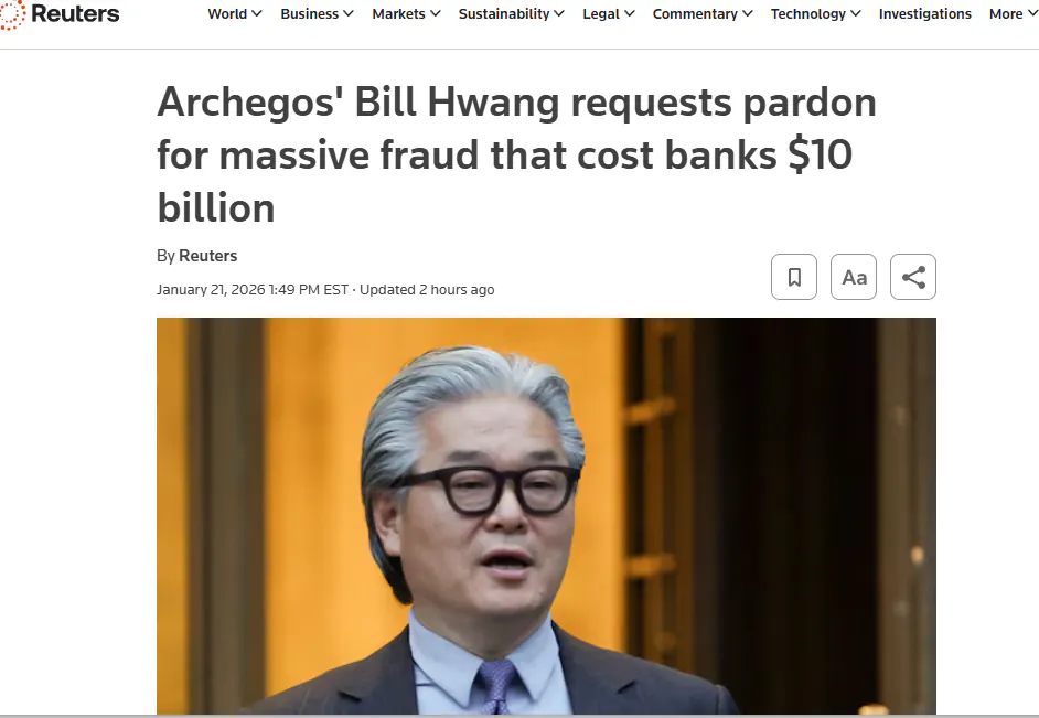 Archegos' Bill Hwang requests pardon for massive fraud that cost banks $10 billion | Reuters