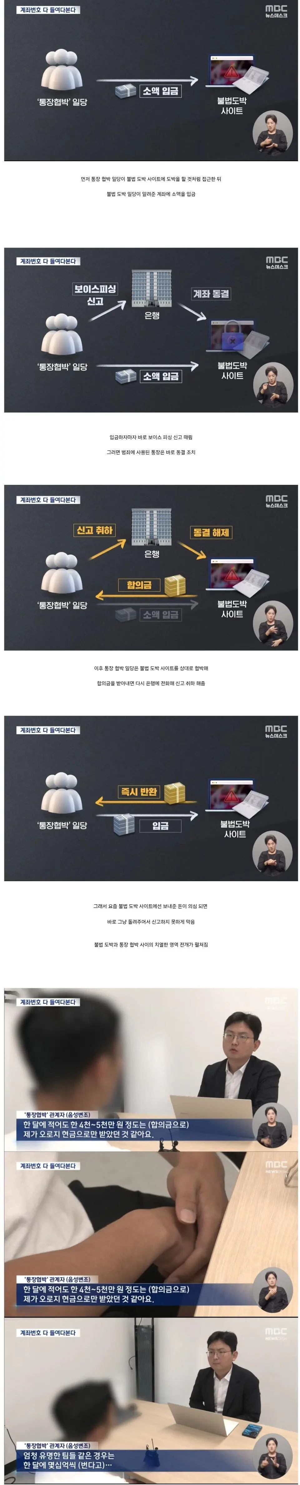 통장 협박 vs 불법 도박 사이트.