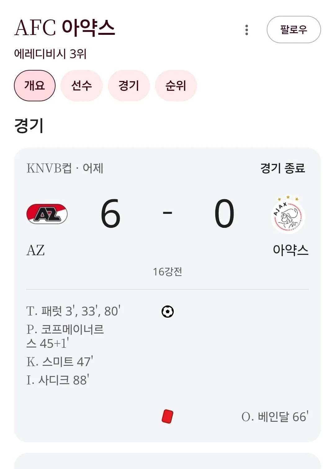 어제자 네덜란드 명문 아약스의 충격적인 스코어 아놔이글스 0 37 0 0 01.16 07:13 주소복사 복사되었습니다! 컵대회에서 6대떡 챔스, 리그에서도 그다지 좋은 상황 아님 0 0