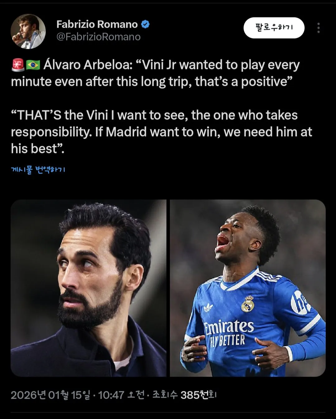 [로마노] 아르벨로아: 비니시우스는 책임감을 가져야 한다 ,오늘 ...