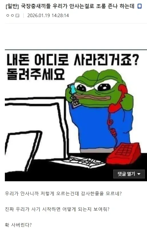 국장 안하냐고 조롱하는 사람들에게 경고하는 미주갤러