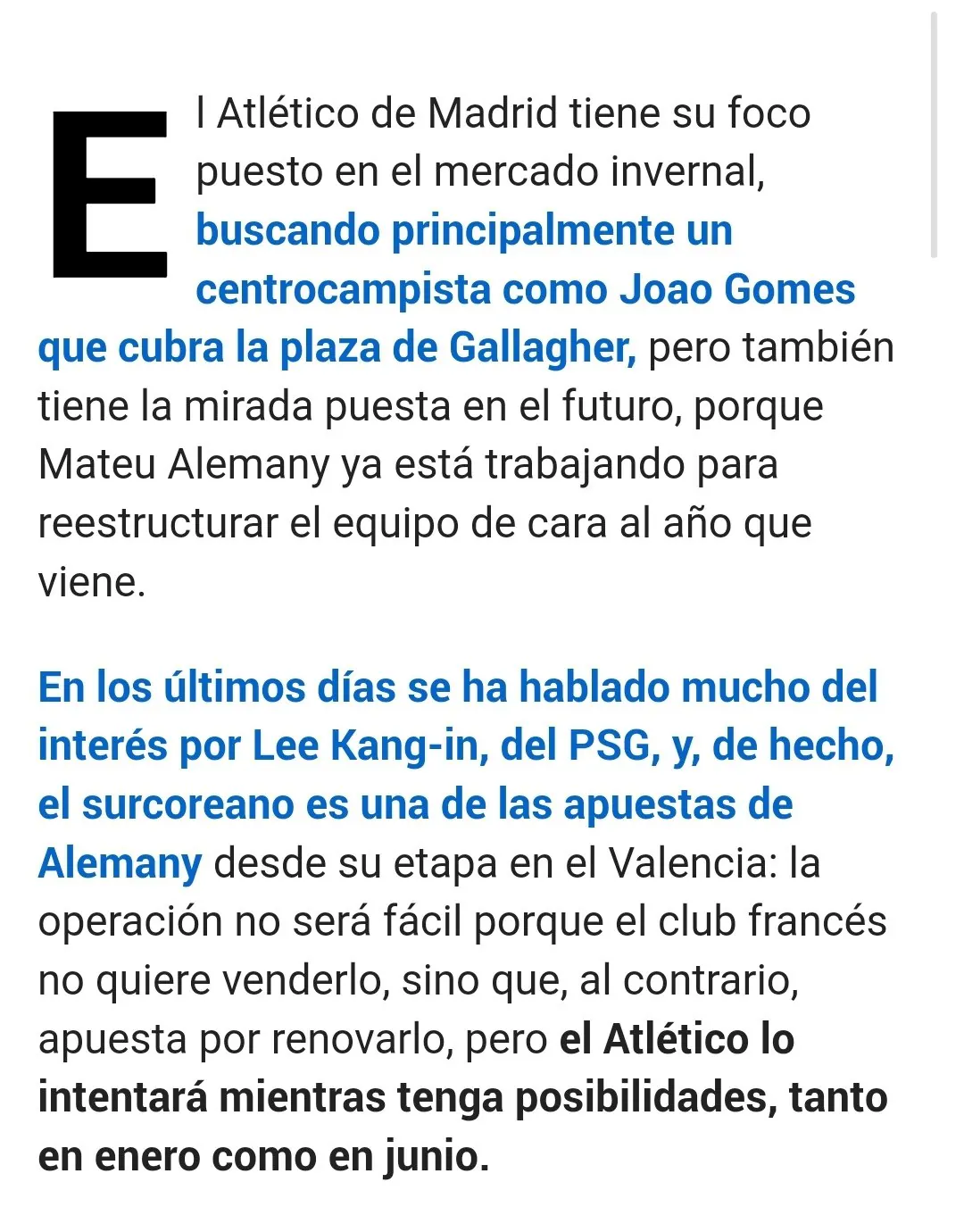 [마테오 모레토] 아틀레티코는 1월에도 6월에도 이강인 영입 시도 ... 코와붕가2 0 10 0 0 01.20 05:13 주소복사 복사되었습니다! 실제로 알레마니가 이강인 발렌시아 시절부터 점찍어둔 선수 하지만 이적 쉽지 않을 전망 파리가 매각할 의향이 없고 오히려 재계약 추진중 그럼에도 아틀레티코는 가능성이 있는 한 이번 겨울이적시장, 다음 여름이적시장 모두 영입시도할것이다. 마테오 모레토 - 공신력 1티어 0 0