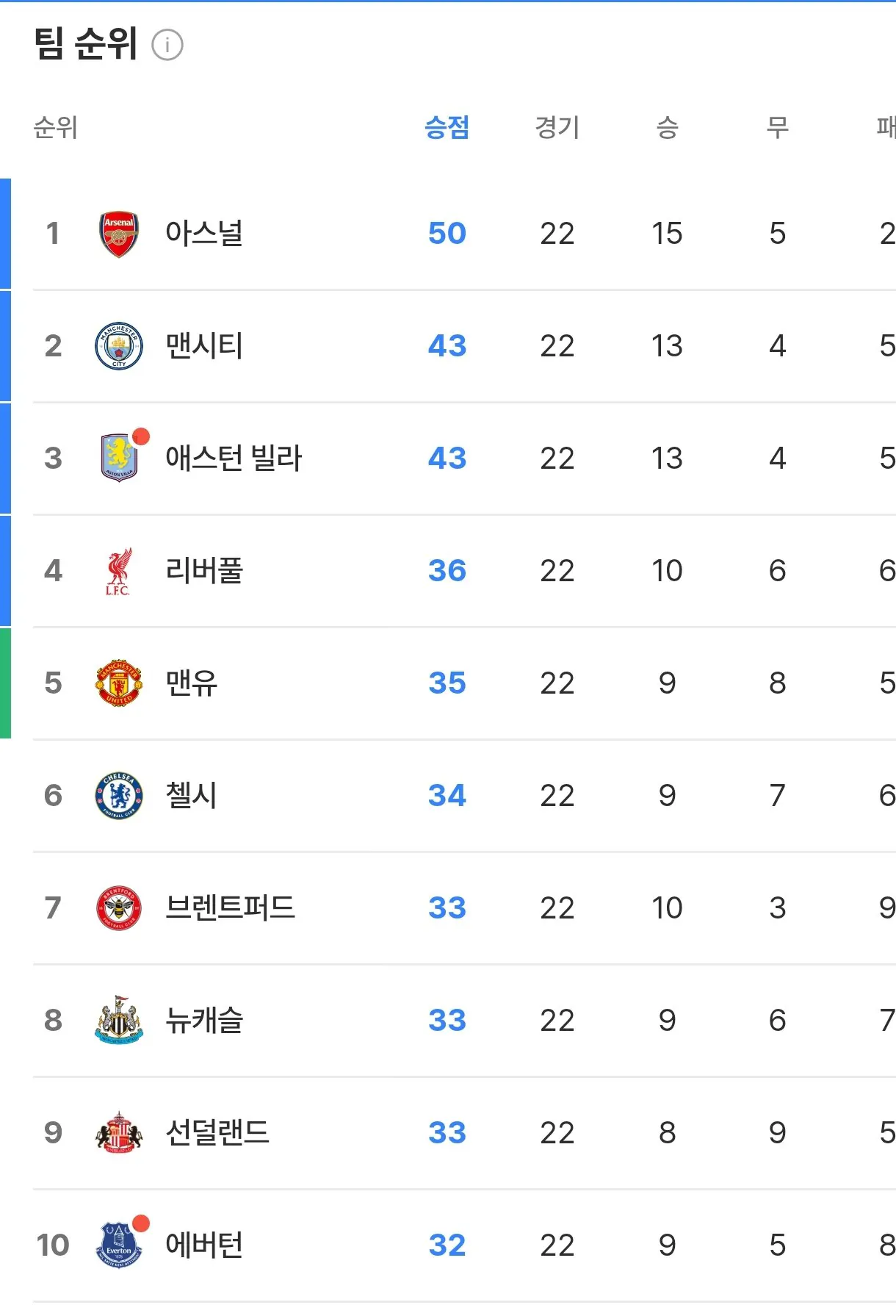 실시간 프리미어리그 순위 니가가라 챔스 ㄷㄷㄷㄷㄷㄷㄷㄷ